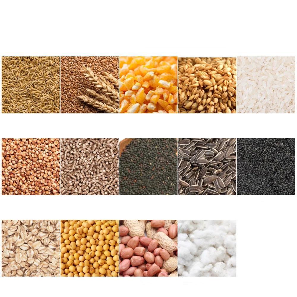Mede com eficiência grãos como milho, soja, trigo, arroz, cevada, sorgo, gergelim, amendoim, algodão, ração, farelo de soja, melão, canola e arroz em casca.
